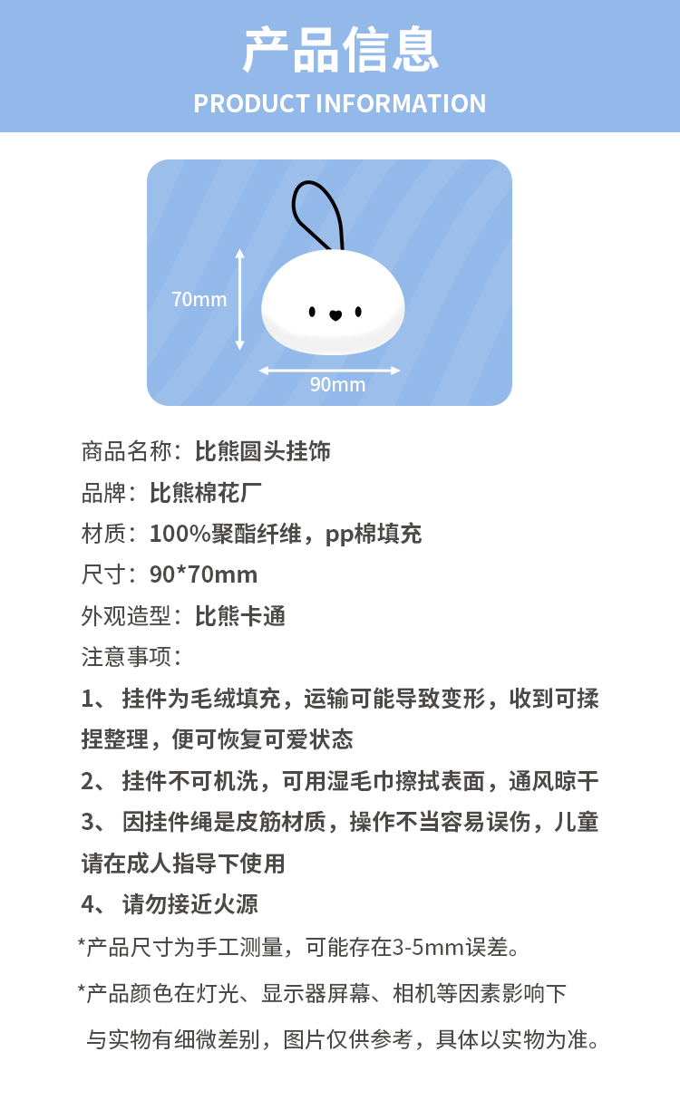 - The pendant is filled with yarn, and transportation may cause deformation. After receiving it, you can arrange it to restore its cute appearance.